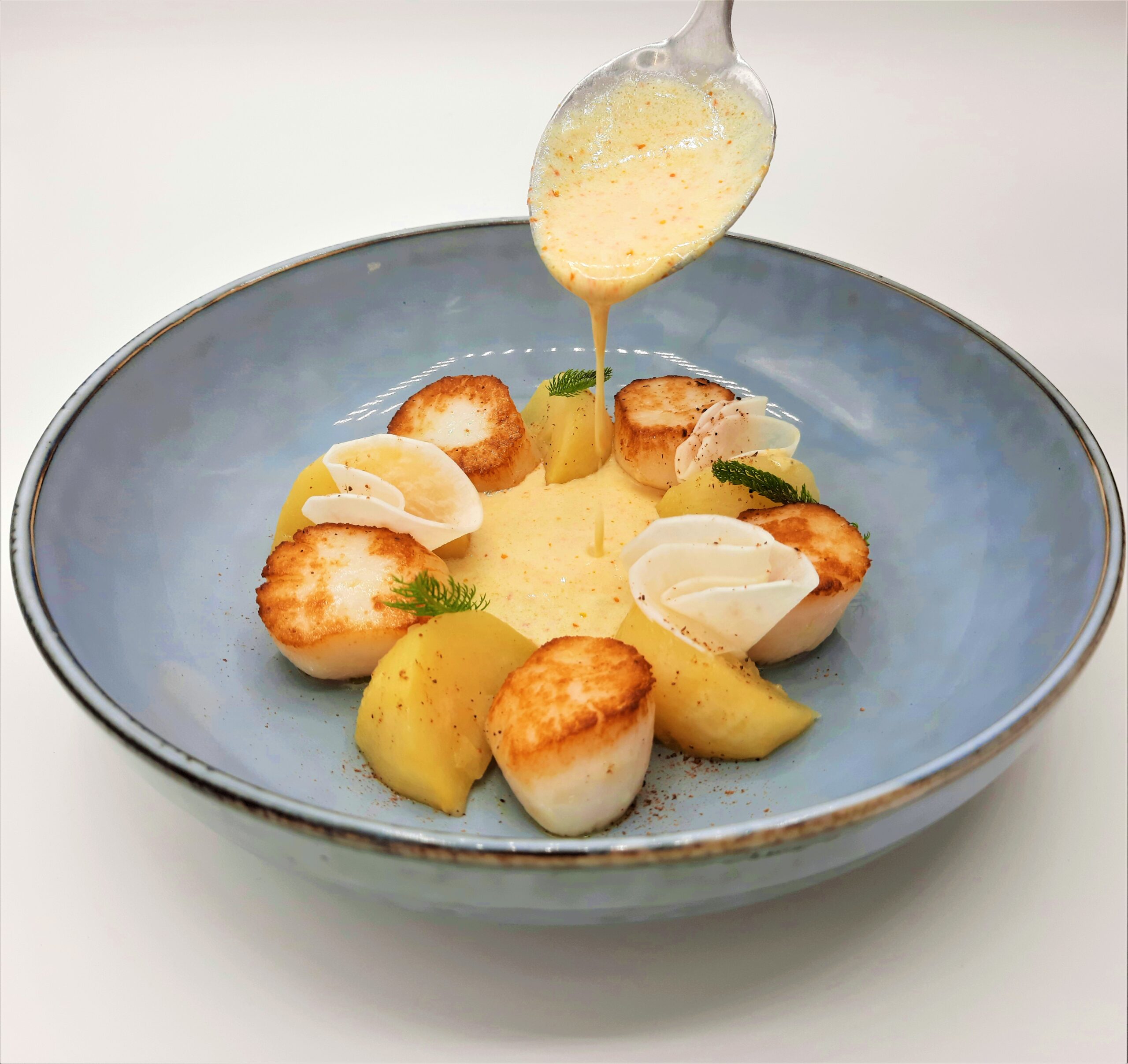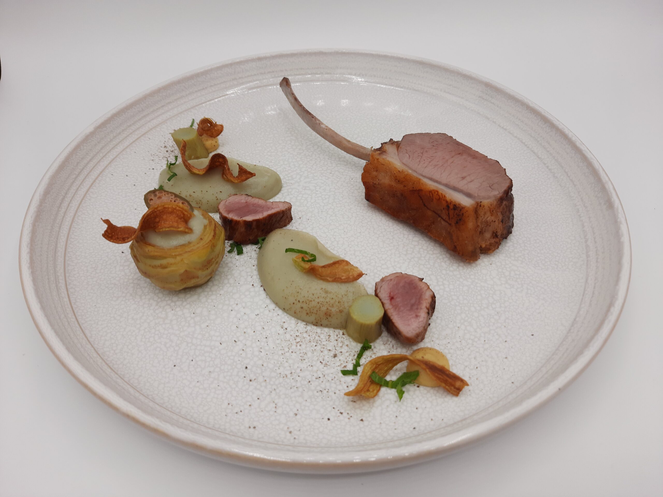 Menu Dégustation - Entrée, poisson, viande, dessert.).