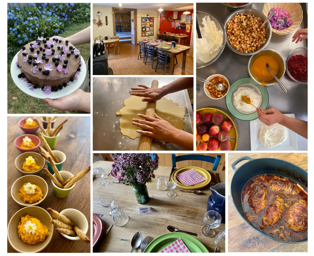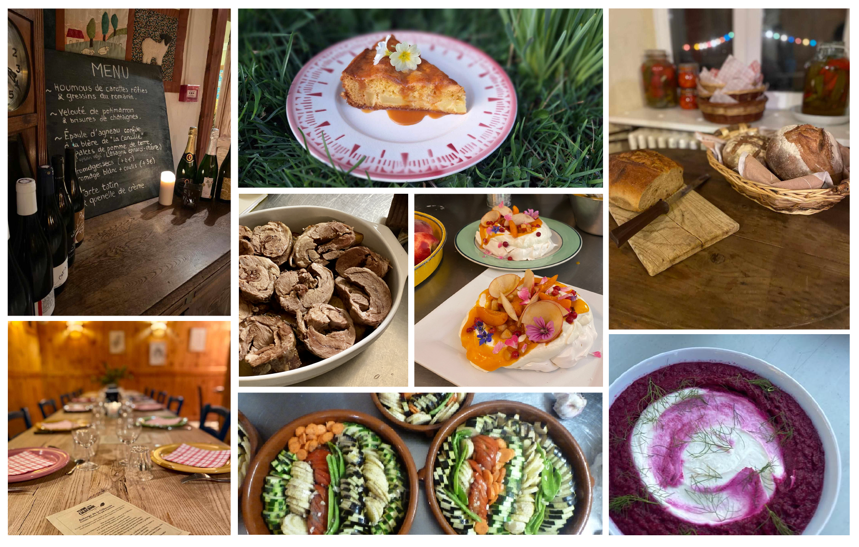 Elle propose un menu unique composé de plats familiaux, joyeux et inspirés, avec une option végétarienne. Tout est fait maison, du pré à l’assiette.